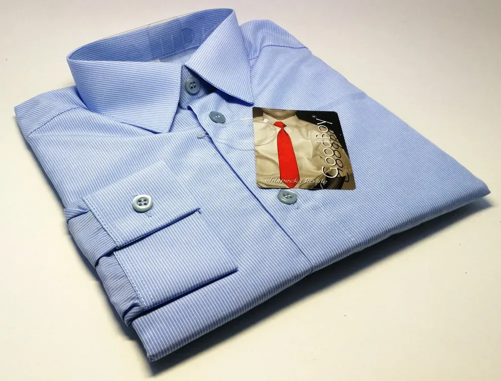 Chlapecká košile s dlouhým rukávem modrá s proužkem SLIM FITskladem362 Kč/ ks299 Kč bez DPH